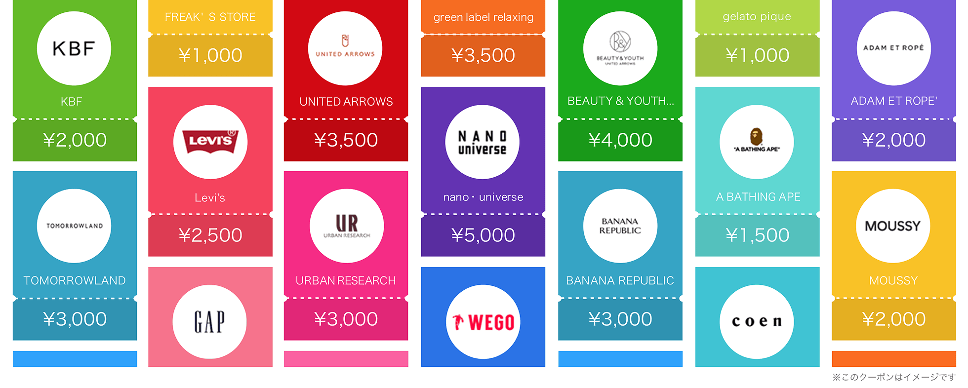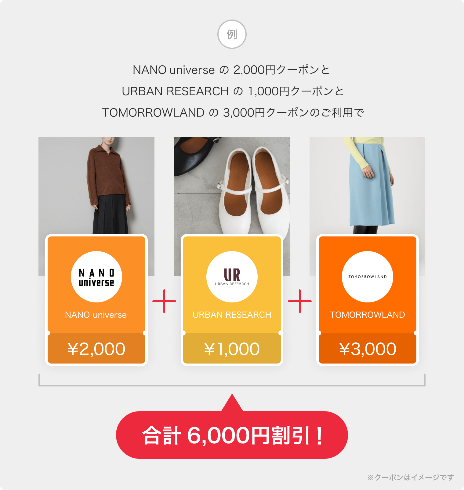 A.URBAN RESEARCH、NANO universe、MOUSSYなど、人気ショップが多数参加しています。