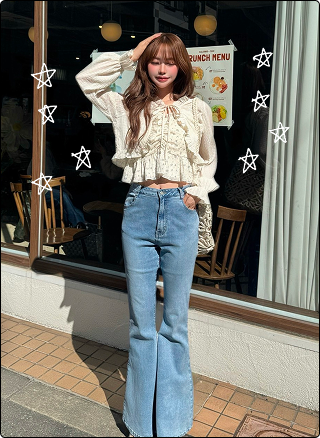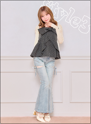 スタイルアップを狙うなら、トップスはタイトに、ボトムはフリルで広がるミニを。ハイウエスト×ミニ丈で脚長&細見えを叶え、メリハリのあるバランスに。大人ガーリーな雰囲気で、特に骨格ウェーブさんにおすすめ。