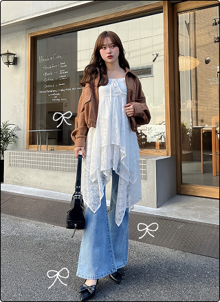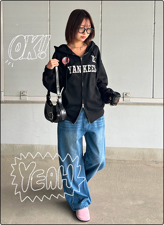 マンネリを感じたら、ダブルジップ×レイヤードで変化を。シャツをちら見せするだけで抜け感と奥行きが生まれ、シンプルでもこなれた印象に。デニム合わせでラフにまとまるのもポイント。