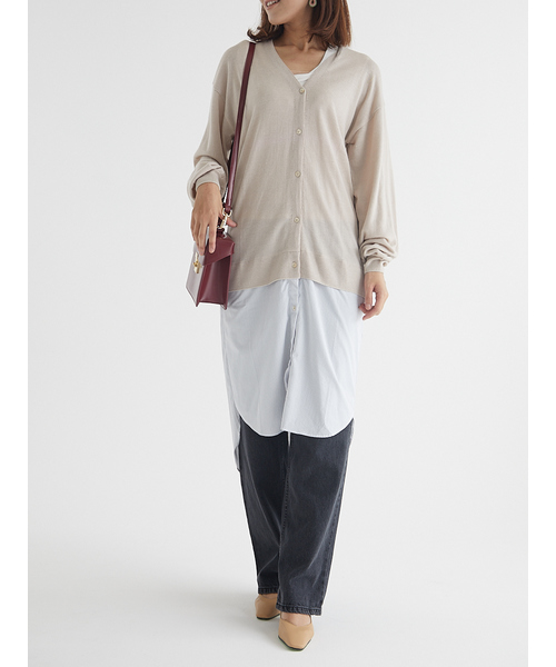 シャツ切り替えロングカーディガン