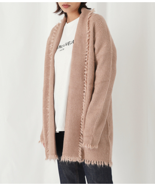 フリンジ畦カーディガン