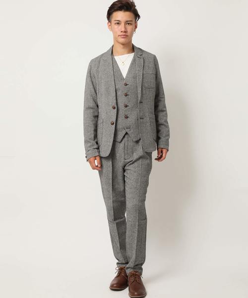 3点セット セットアップ ツイード 3ピースセットアップ テーラードジャケット+ジレベスト+ストレートパンツ