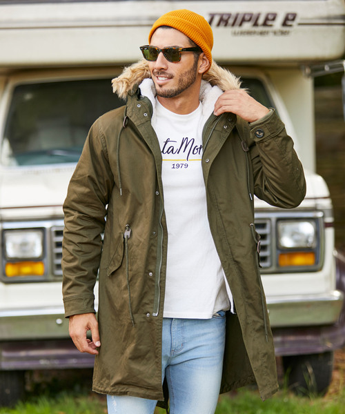 ストレッチジャーマンクロス 2WAY ロング モッズコート / ファー&インナーボア脱着
