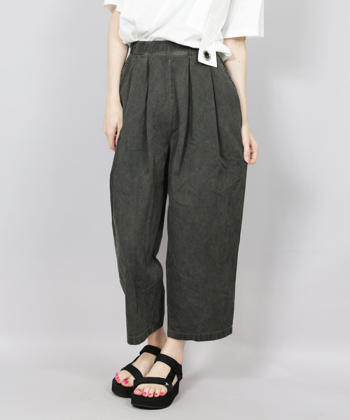 WHITE/ツイル ピグメント加工テーパードパンツ