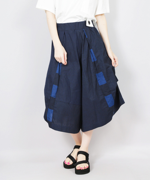 WHITE/コットンリネンクロス デザインワイドパンツ