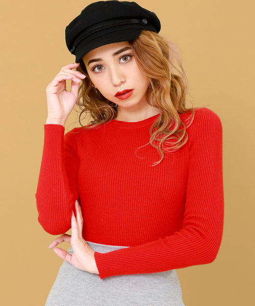 つまりクルーネックリブトップス