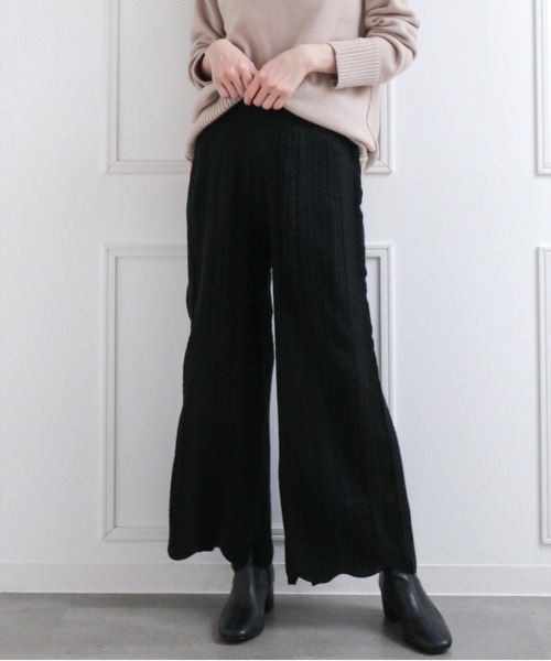 裾スカラップケーブルニットパンツ