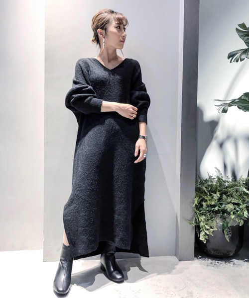 ウール混Vネックワンピース