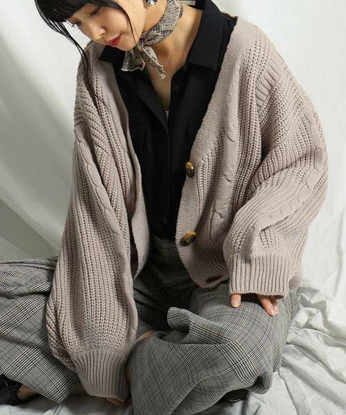 ざっくり畦編みドルマンスリーブニットカーディガン
