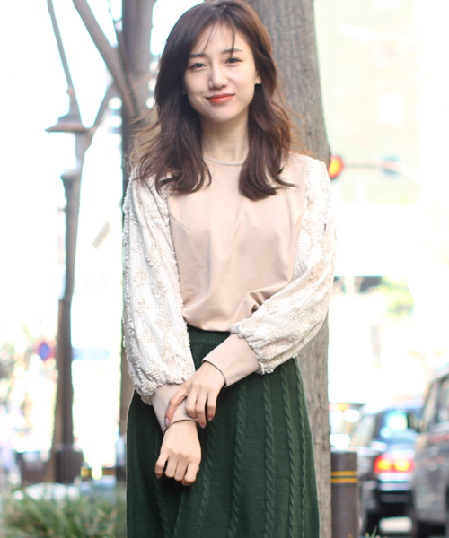 モールレースボリュームスリーブプルオーバー