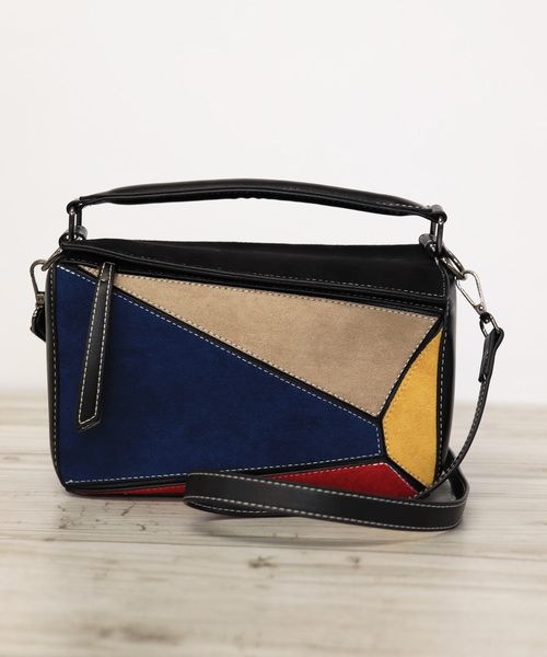 【2way】パズルデザインモザイクショルダーバッグ/ハンドバッグ