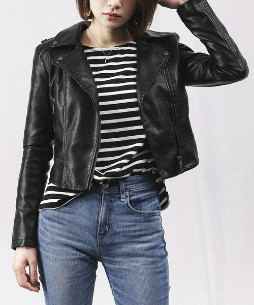 ショート フェイクレザー ライダースジャケット