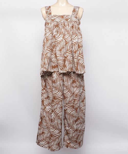 【U-BASIC】ボタニカルハワイアンスリーブレス&ワイドパンツセットアップ