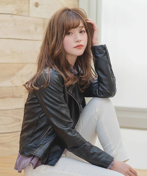 【U-BASIC】フェイクレザーダブルライダースジャケット