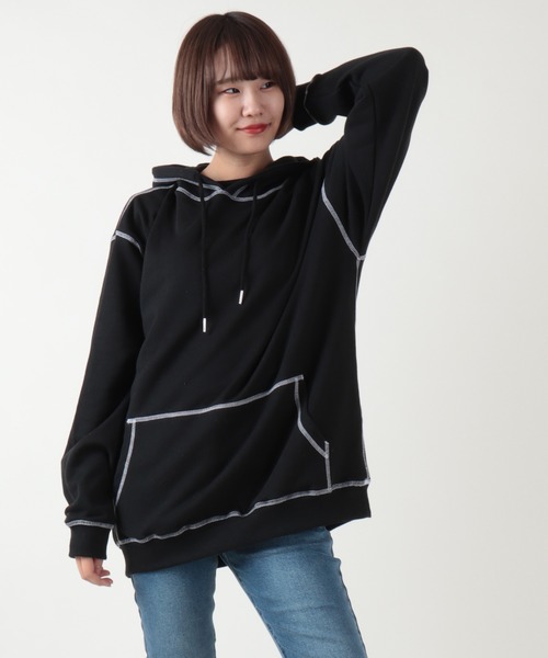 【SUGGESTION】配色ステッチBIGパーカー フーディ