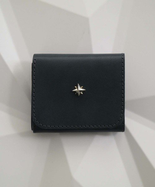 An+u (アンユー)栃木レザー W Starスタッズ 三つ折りミニウォレット