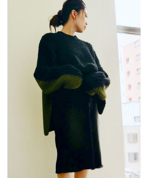 バイカラータートルニットTOPS
