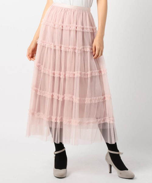 フリルフリルティアードロングチュールスカート