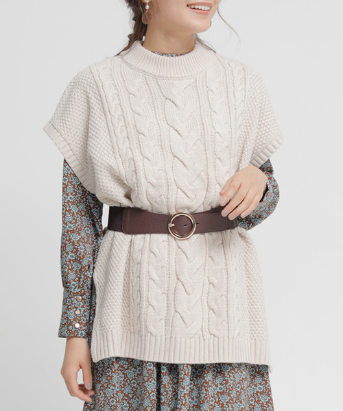 ケーブル編みニットビッグベスト