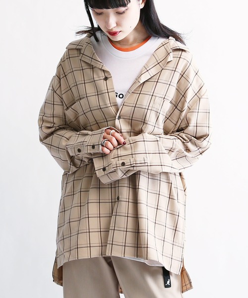 ガンクラブ グレン チェック オープンカラーオーバーサイズ シャツ