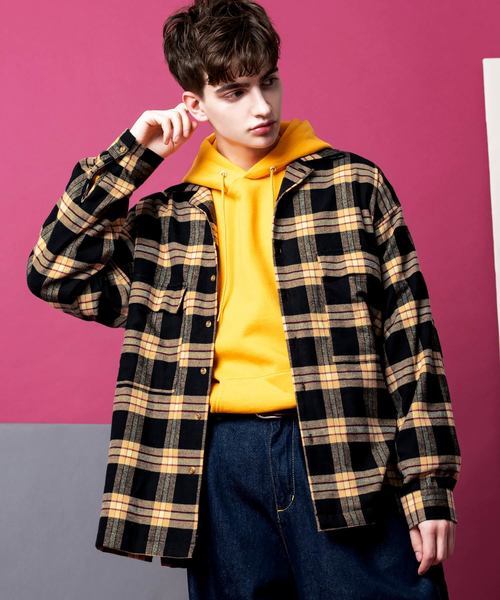 ビッグシルエット チェック ポケット ネルシャツ