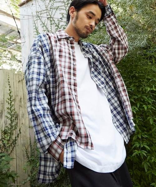 unrelaxingオーバーサイズ切り替えチェックシャツ