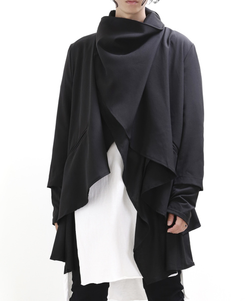 【minsobi】2way ドレープネック変形ジャケット / ショールカラージャケット