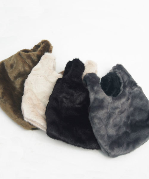 2wayベーシックカラー内ポケット付きフェイクファートートバッグ