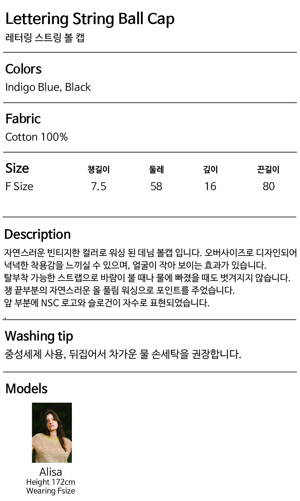 レタリングストリングボールキャップ (インディゴブルー)