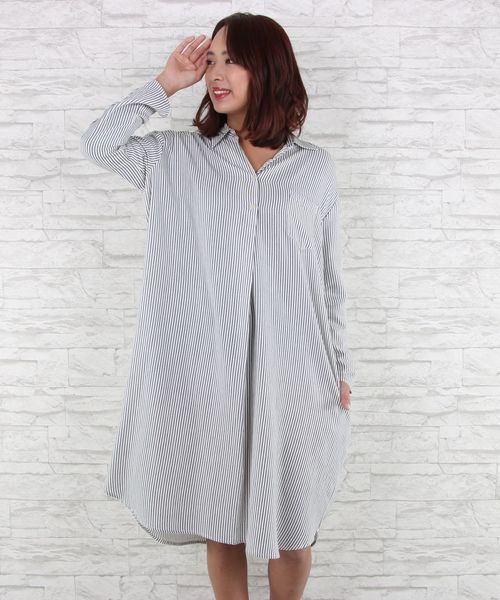 『Med winds(メッド ウインズ)』フロントボタンタック風シャツワンピース【大きいサイズ対応】【9号(M)〜15号(3L)】