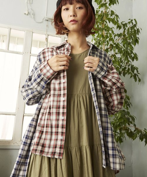 オーバーサイズ切り替えチェックシャツ