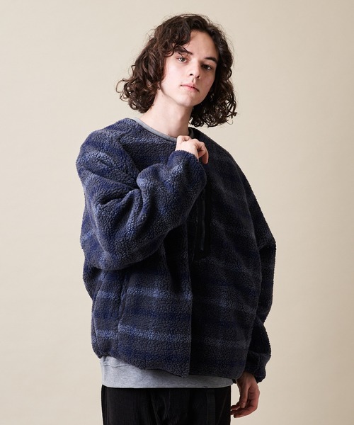 【THE HITSS】チェック柄 ボア ノーカラーブルゾン