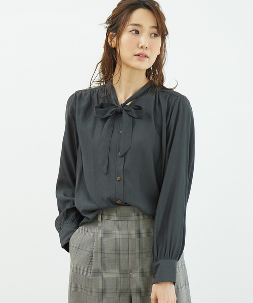 無地&花柄ボウタイブラウス