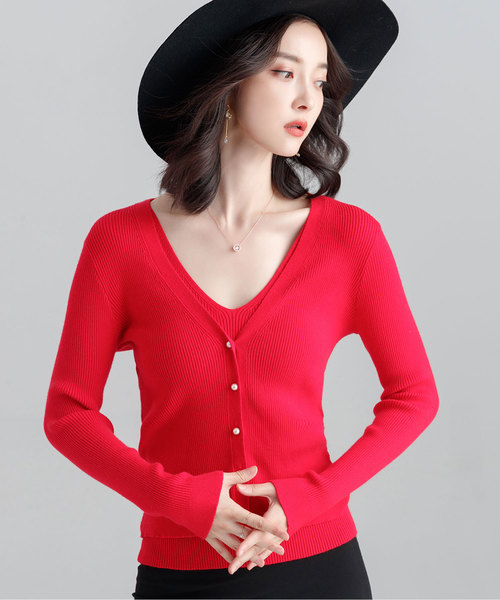 リブカーディガン&タンクトップアンサンブル