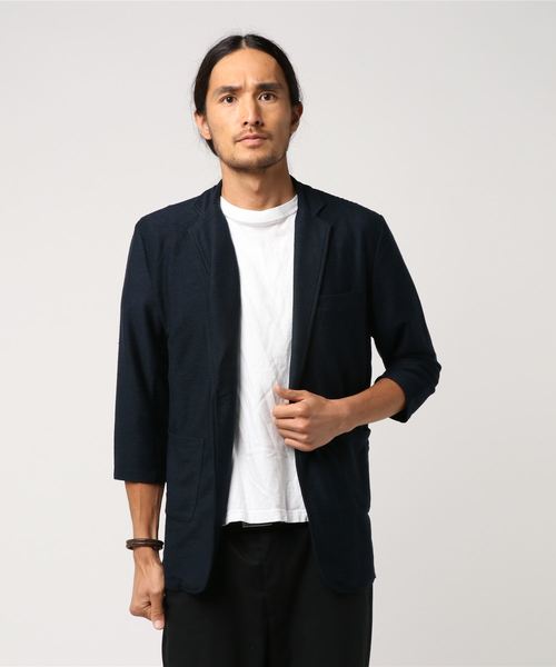 セマンティックデザイン/semantic design スラブリップル7分袖カットジャケット(黒・ネイビー)
