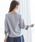 配色ライン入り袖口りぼん付きブラウス