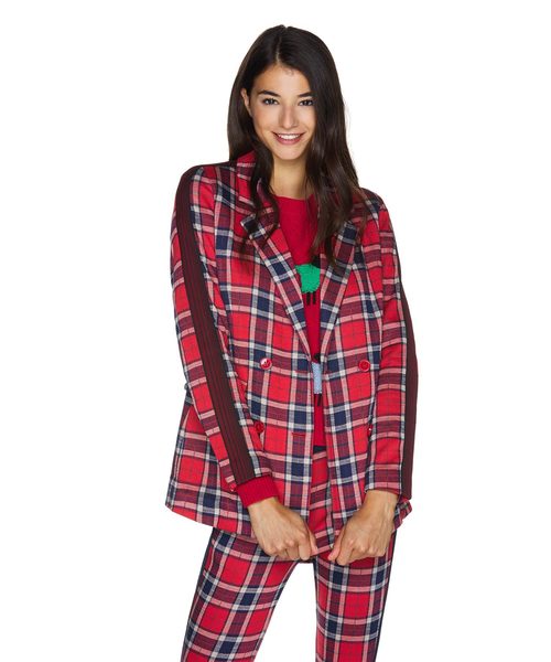 袖配色ダブルチェックジャケット