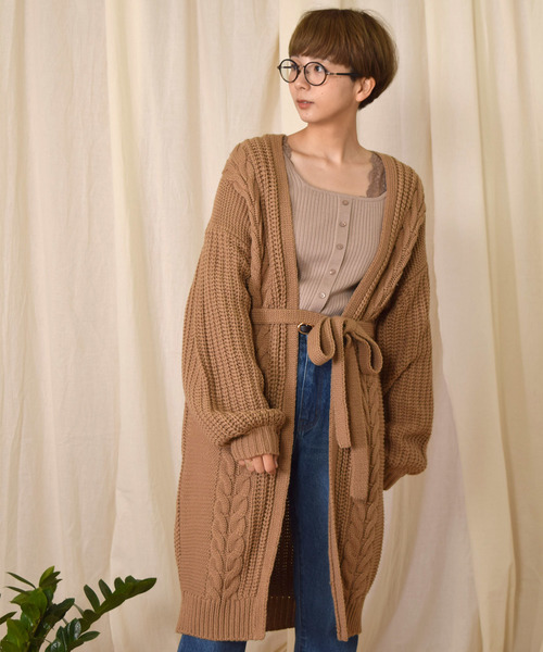 ケーブルロングカーディガン