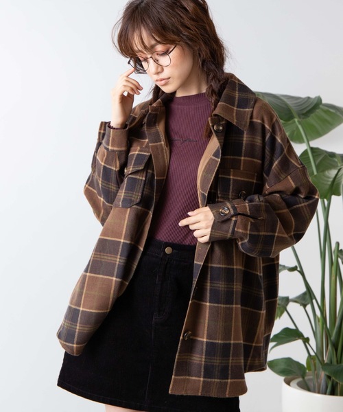 WEGO/ビッグシルエットチェックCPOシャツジャケット