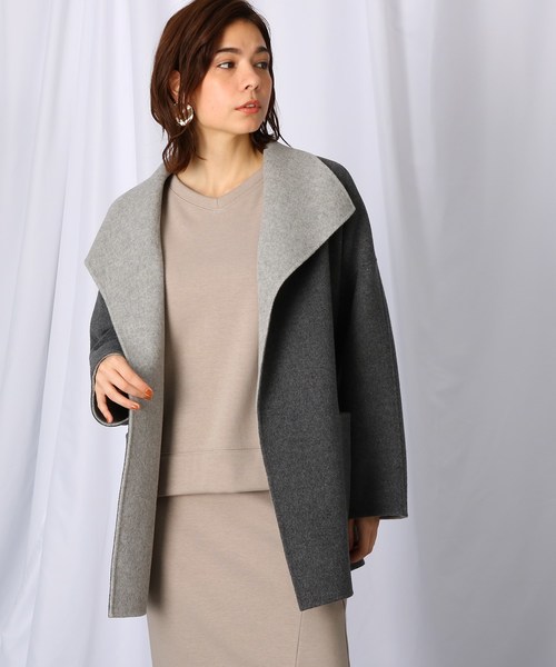 ウール混ダブルフェイスベルテッドジャケット