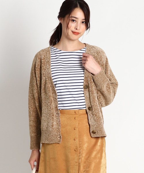 【Sサイズあり、洗える】ベロア風モールVネックニットカーデ