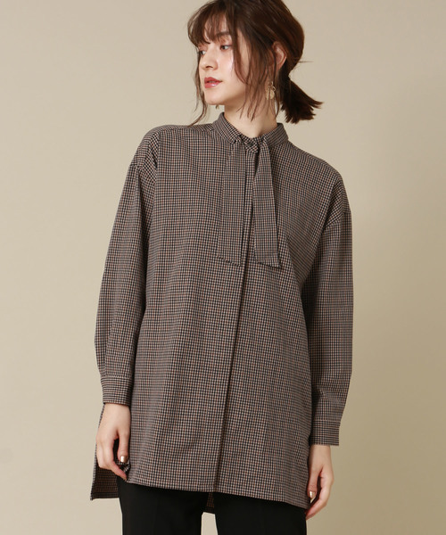 2wayチェック柄ボウタイロングブラウス